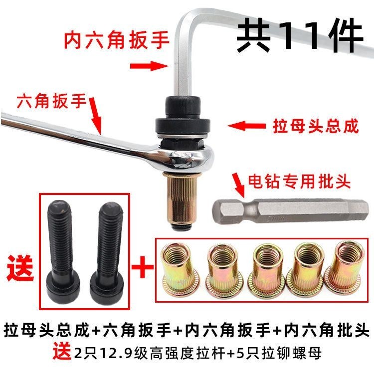 上新*台灣熱銷汽車拉母頭 拉鉚螺母工具 薄鐵皮手動電動鉚螺母 拉卯拉姆拉帽槍頭 拉鉚螺母 汽車工具 鉚釘工具鑫盛