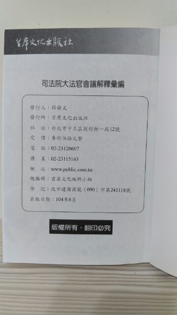 司法院大法官會議解釋[釋字1到730]-首席文化出版
