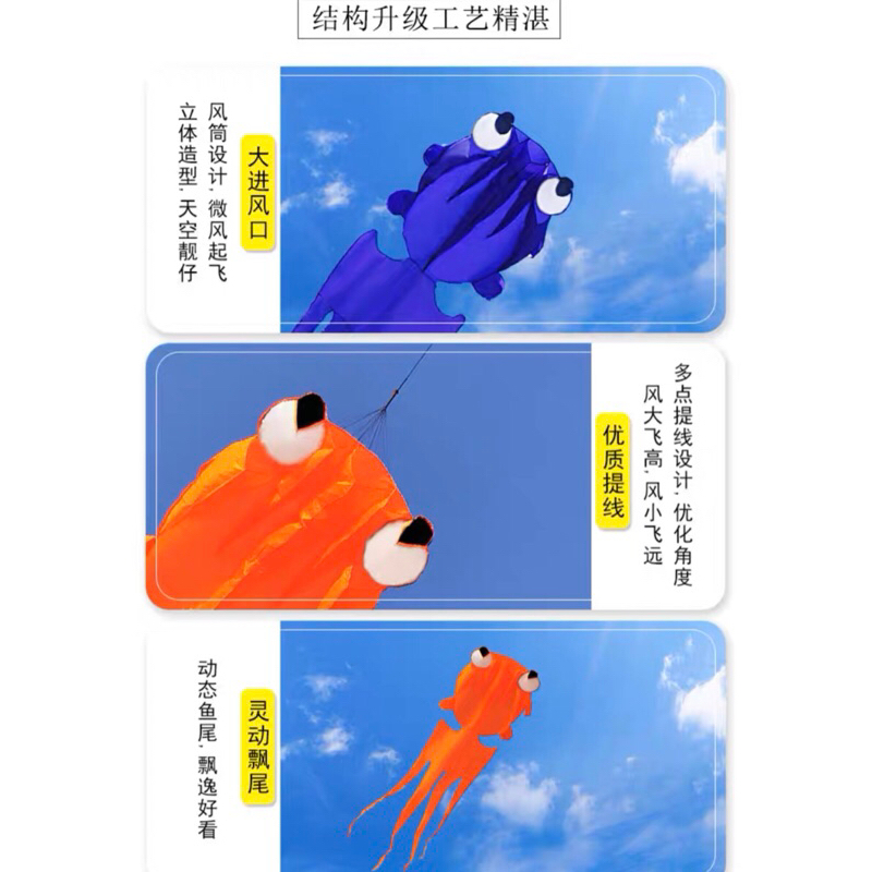 台灣現貨 軟體風箏 折疊 無骨架 三葉蟲 金魚 鯨魚 章魚 風箏 3D 立體風箏 RealTree防護手套
