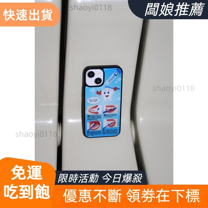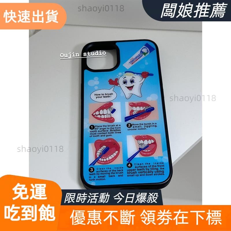 【老闆精選】韓國小眾博主同款好好刷牙黑邊殼適用於16/15pro/14promax/13/12/11手機殼保護套黑邊