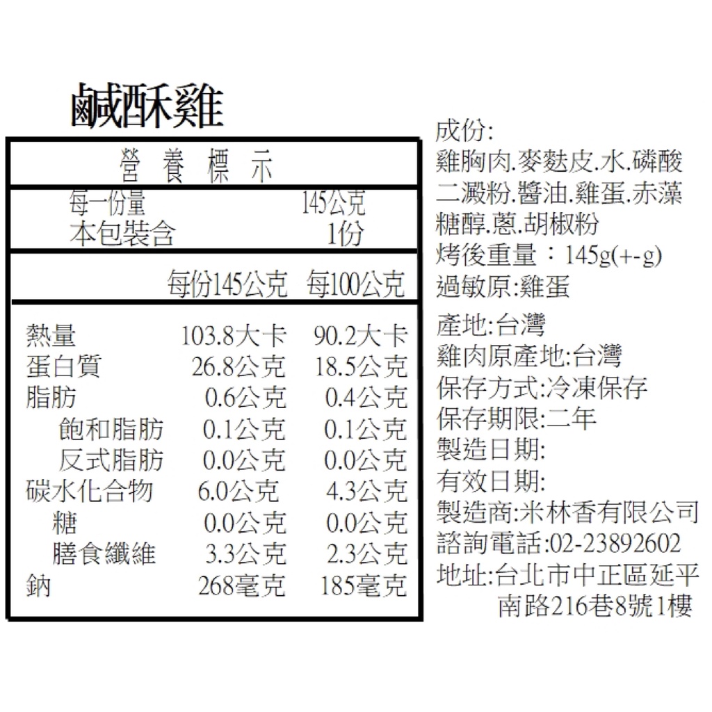 米林香 無麵粉麥麩皮鹹酥雞一包50g 45大卡|淨碳1g 炸雞 雞塊 無澱粉 夜市小吃 熟食