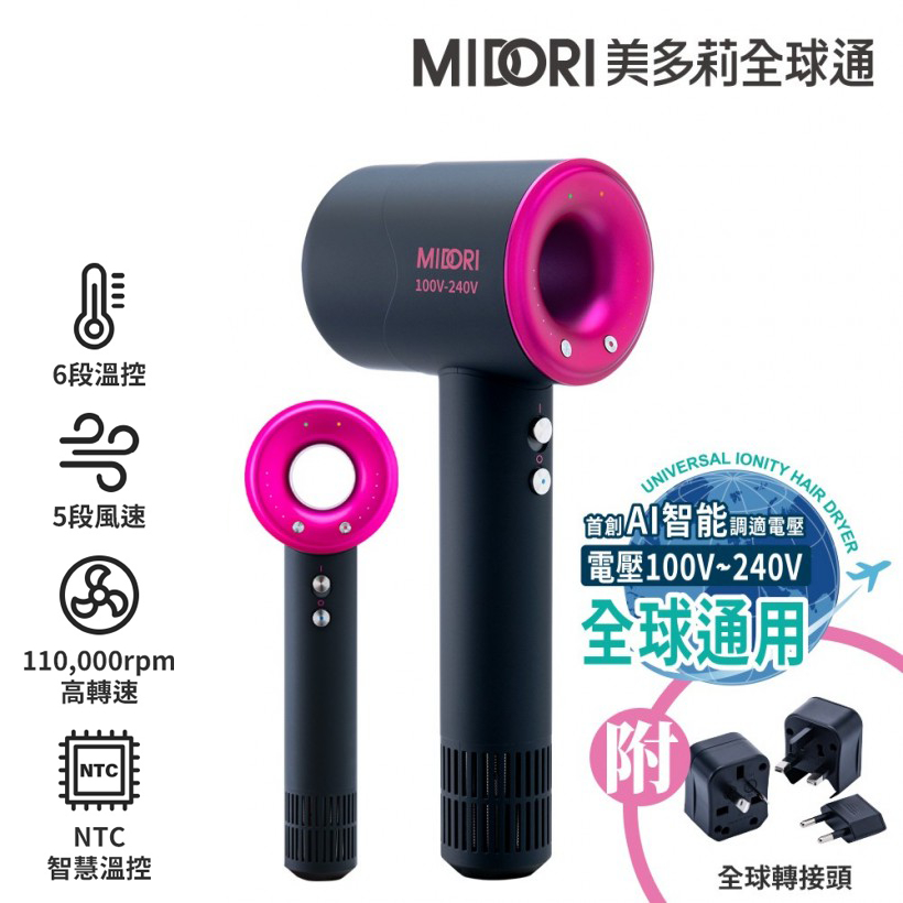 【三層肉】台灣現貨 MIDORI美多莉高風速溫控負離子吹風機 全球通用電壓 美多莉AI智能吹風機旅行必備組 四色任選