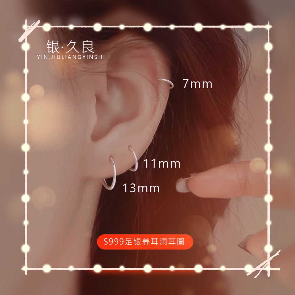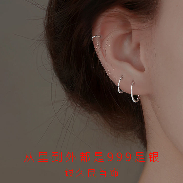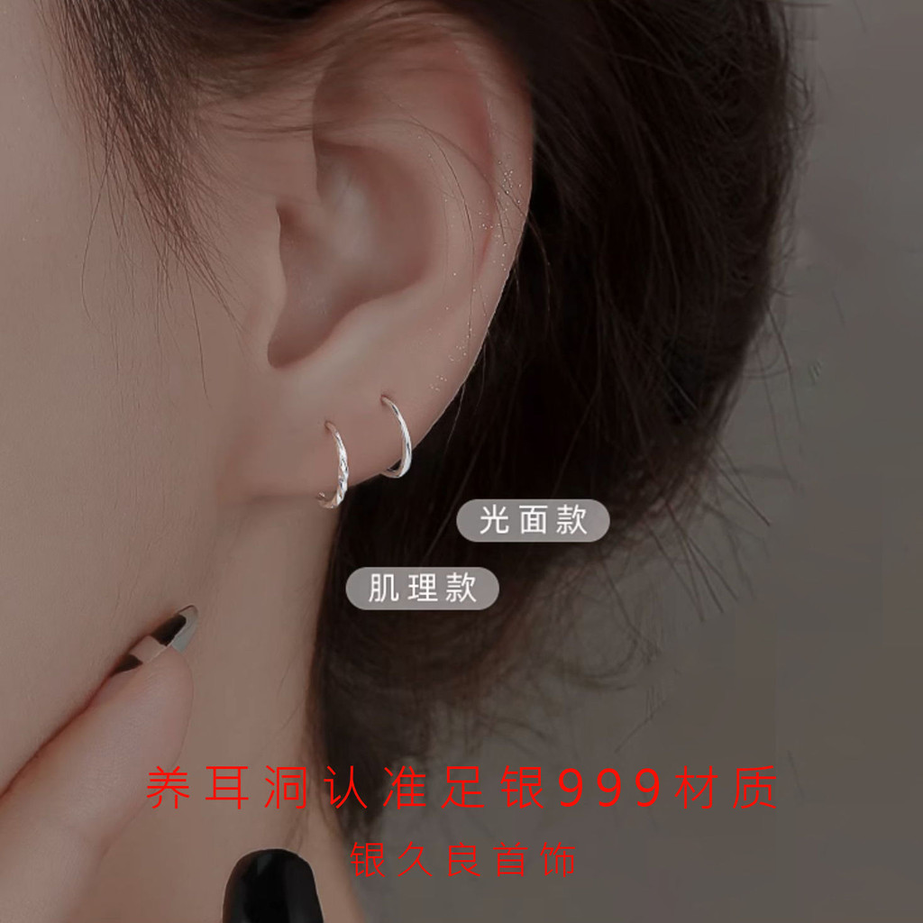 🔥限時下殺🔥【2293人好評】S999純銀素圈耳環耳釘2024新款爆款耳圈小耳扣耳飾女學生耳骨環