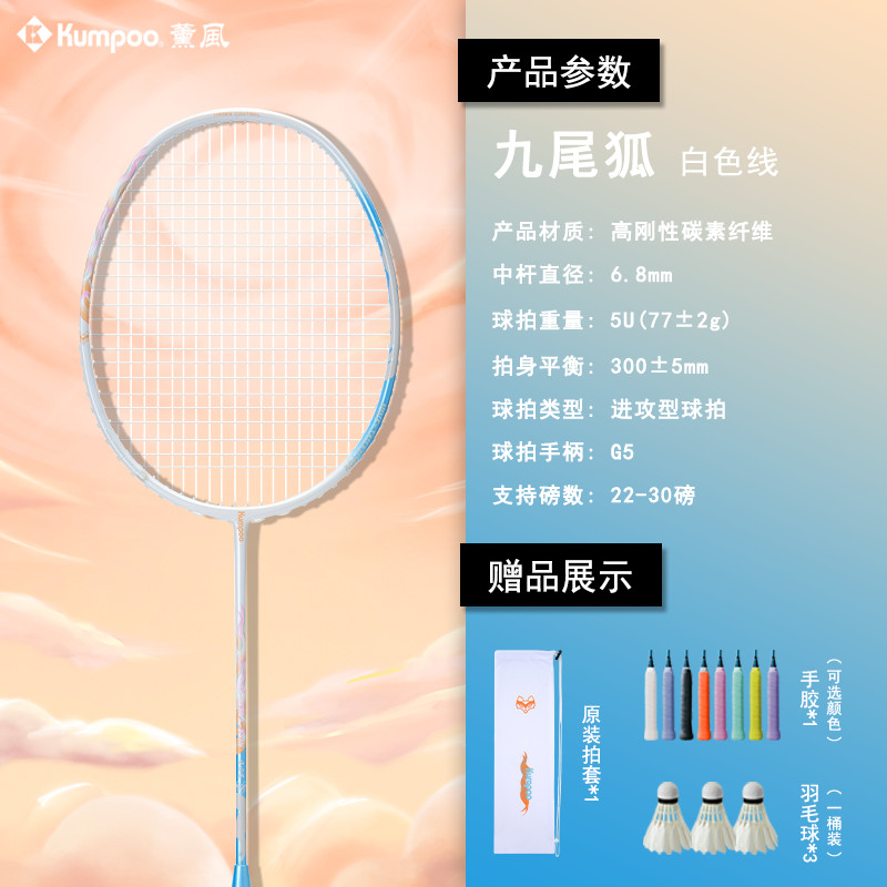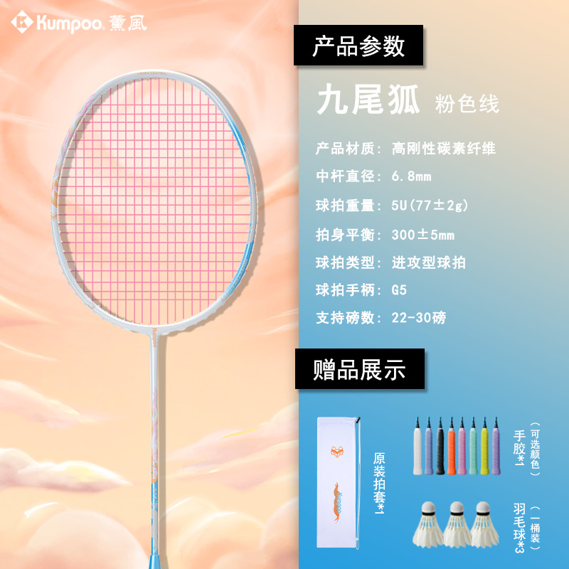 【正品羽毛球拍】薰風羽毛球拍九尾狐高級紫外光非變色全碳素縴維男女比賽訓練專用