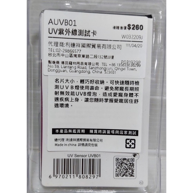 REPTIZOO 利達祥 UV 紫外線 測試卡 UVB 測試片 簡易測量 紫外線燈