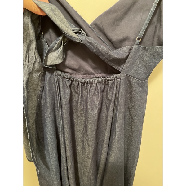 Natural couture 背蝴蝶綁帶V領細肩單寧洋裝