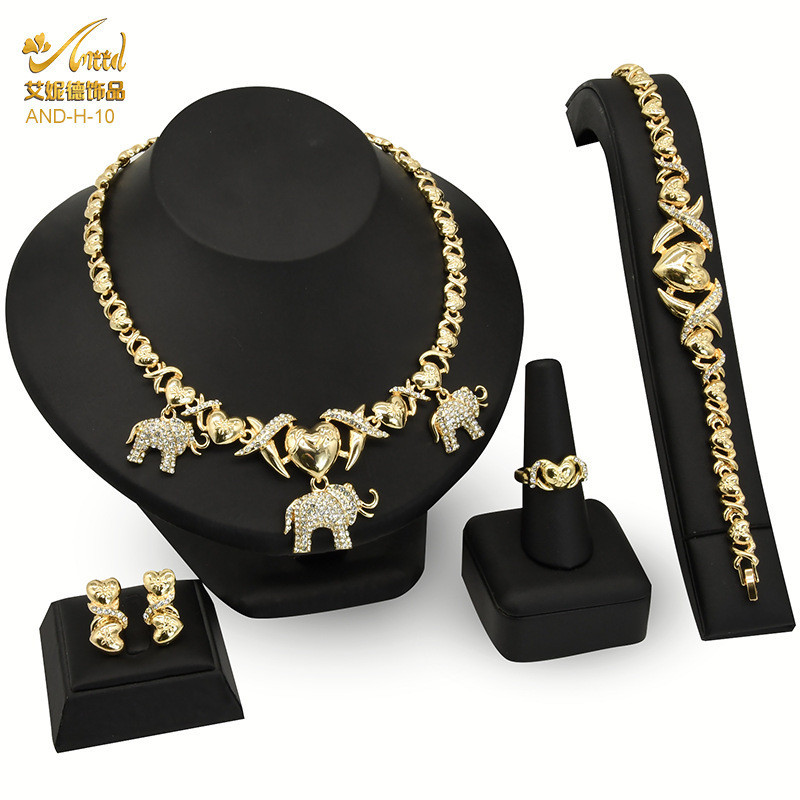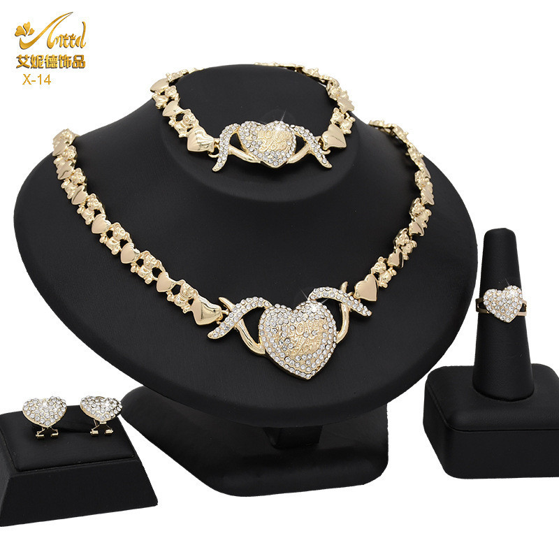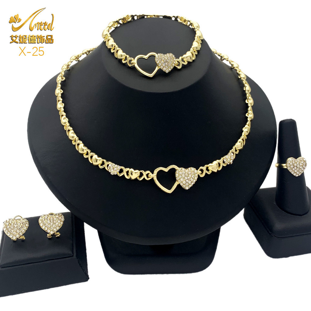 跨境新款迪拜18K金心形首飾套裝新娘女飾品項鏈戒指耳環手鏈批髮