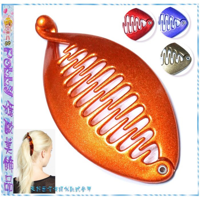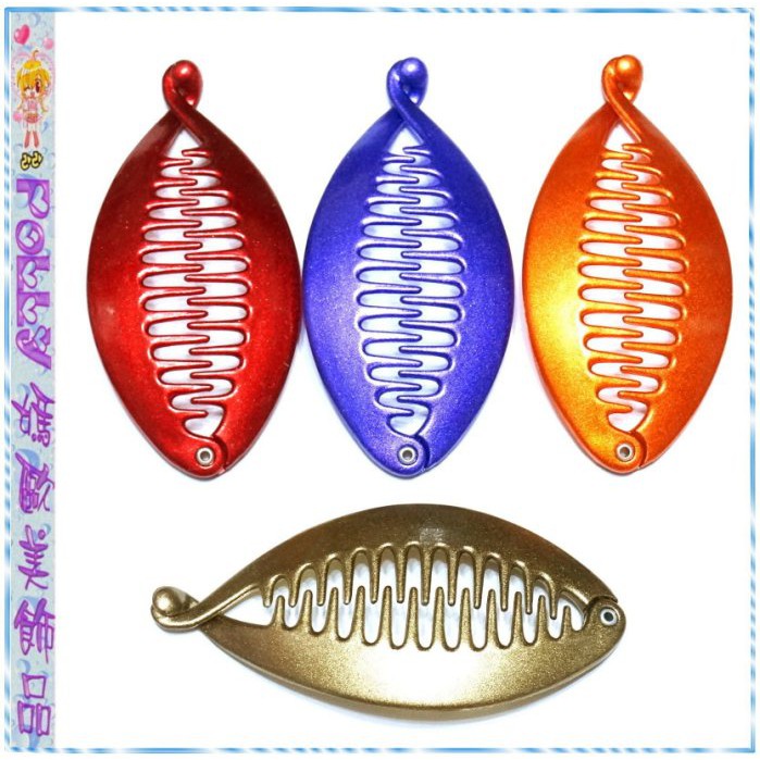 ↘清倉特價歐美進口Covered Banana Clip銀粉壓克力髮梳式魚形香蕉夾齒梳3×10cm~紅色、紫色、橘色、金