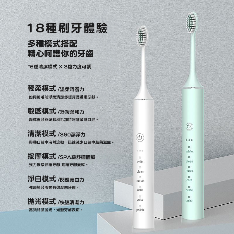 隔日配💯飛利浦同款電動牙刷 深度去漬清潔牙齒 6種模式18檔 杜邦軟毛刷頭超聲波震動牙刷 全機可水洗IPX7防水智能牙刷