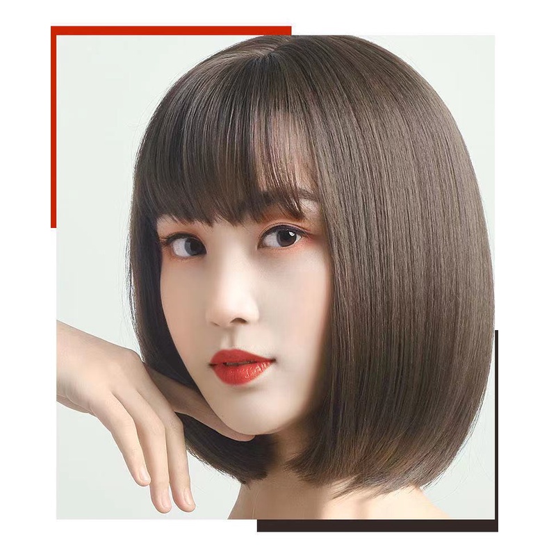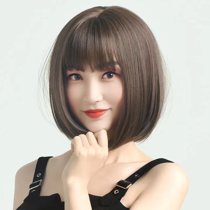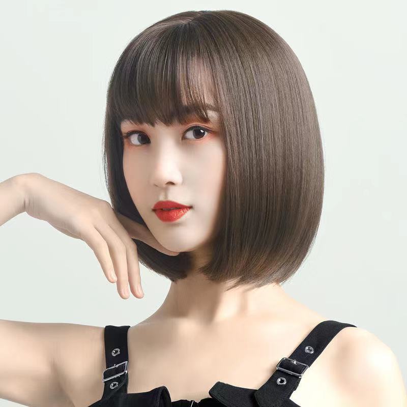 💋在台快速發貨💕現貨💕女生假髮甜美可愛短直髮頭套網紅流行空氣劉海波波頭仿真大頭皮齊劉海短直髮妹妹頭學生BOBO頭
