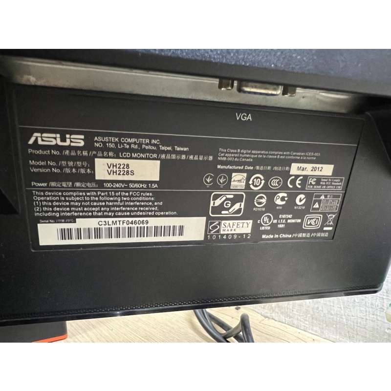 電腦雜貨店~22吋LCD液晶螢幕 華碩 ASUS VH228 支援(VGA)二手良品 $800