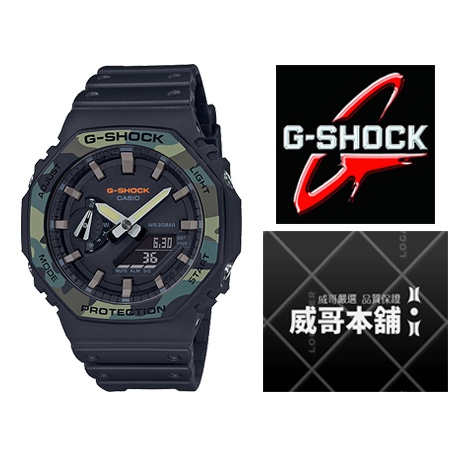 【威哥本舖】【現貨】Casio台灣原廠公司貨 G-Shock GA-2100SU-1A 全新街頭軍事風 綠迷彩八角雙顯錶