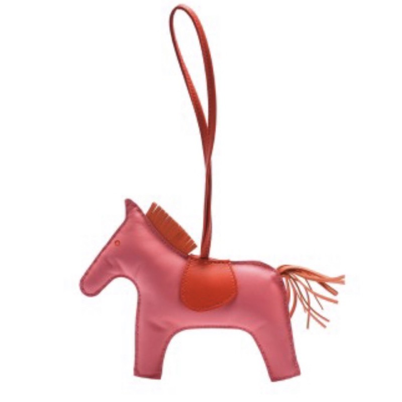 【HERMES】RODEO GM 馬兒造型拼色小羊皮鑰匙圈/吊飾(中-粉X紅H064930CA-PINK-RED)