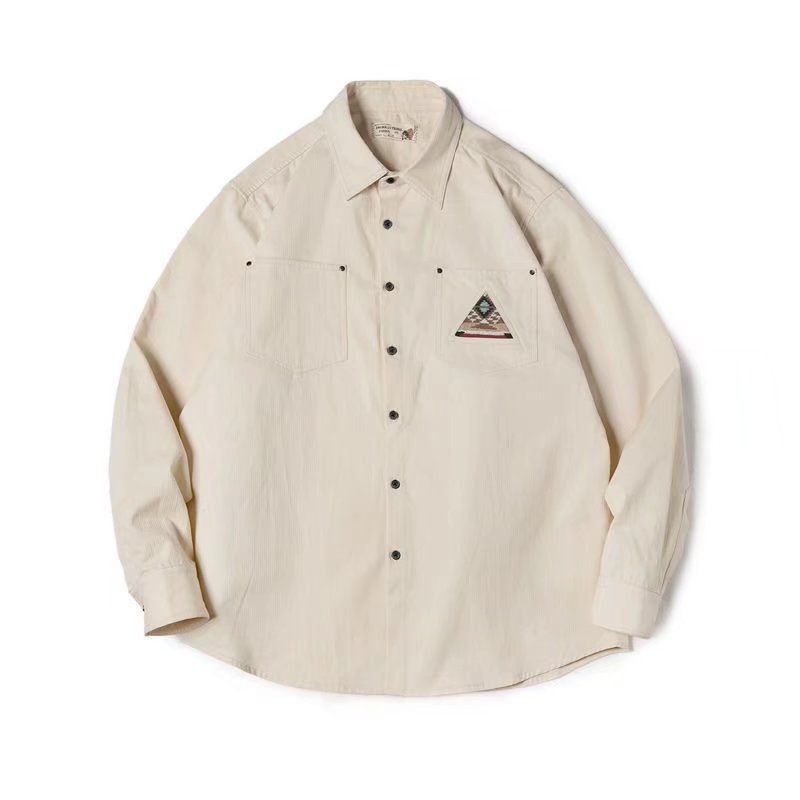 ✅嚴選 BY SIZE❓日式工程師 工裝復古印第安圖騰刺繡長袖襯衫男硬朗疊穿 休閑襯衣米白色外套男