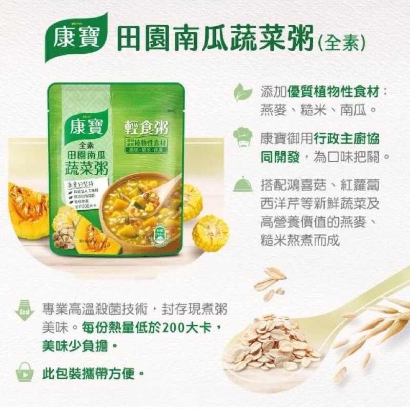康寶芋頭瘦肉粥 田園南瓜蔬菜粥 1j康寶粥