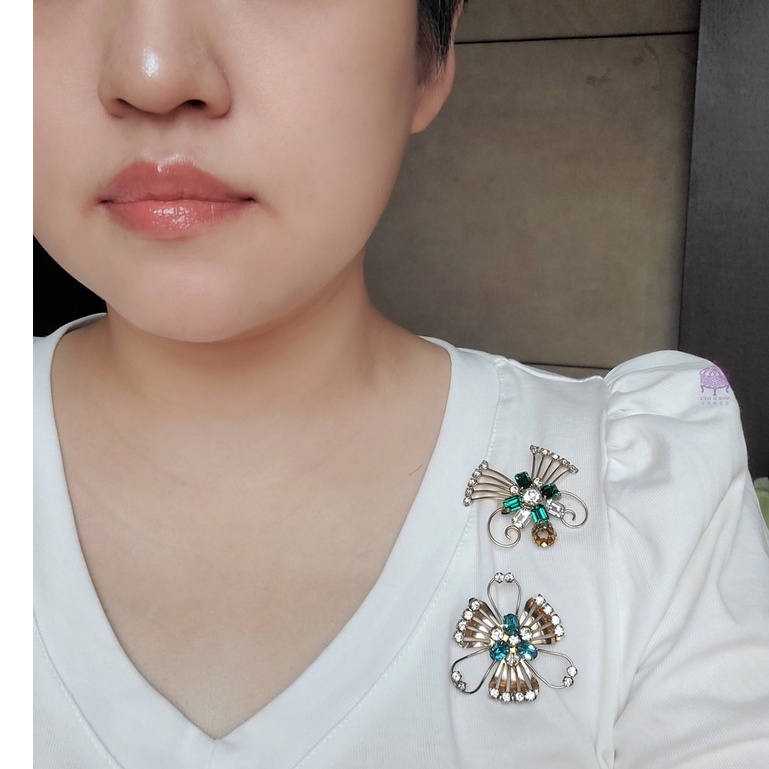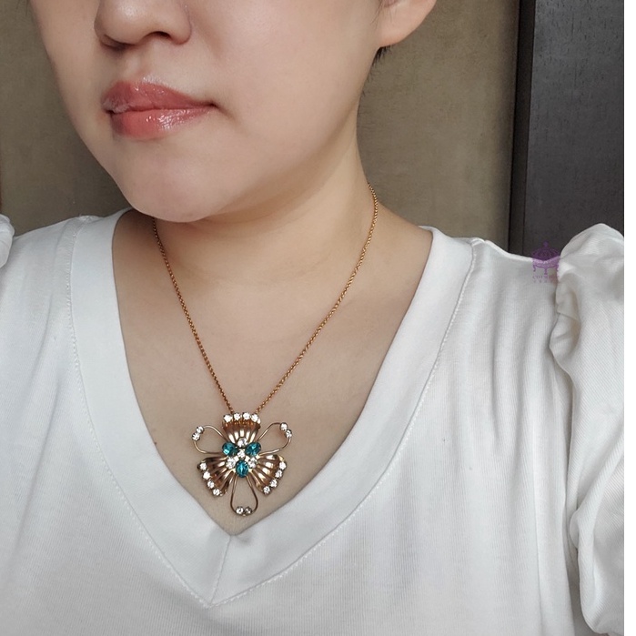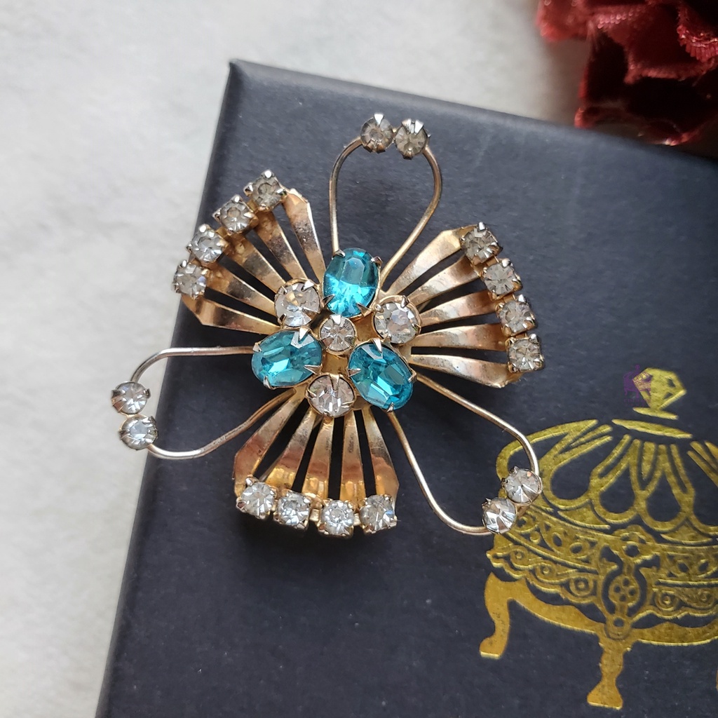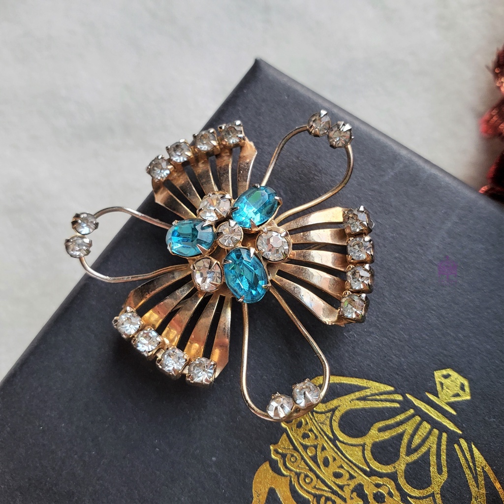 De Curtis水藍放射抽象花朵別針鍊墜【C’est Si Bon古董珠寶盒】Vintage老飾OL上班主播水鑽 優雅