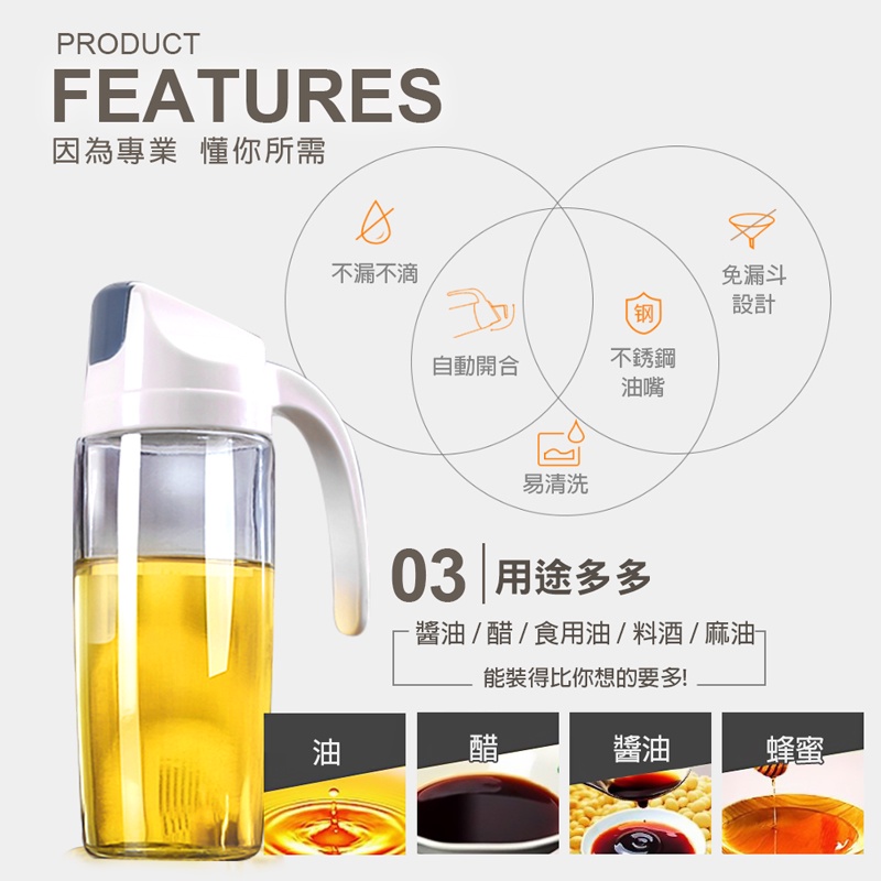 自動開合 玻璃油壺 油 瓶 防漏 玻璃 油壺 家用 廚房 調料 油罐 醋瓶 調味瓶 香油瓶 醬油瓶【CC0122】