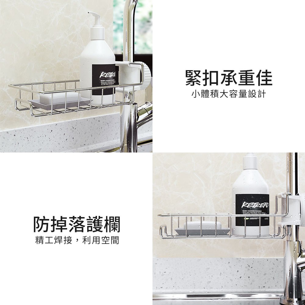不銹鋼水龍頭置物架 廚房瀝水籃 抹布瀝水架 瀝水架 免打孔 水槽收納架 可調節瀝水架 廚房收納 廚房清潔【CC0126】