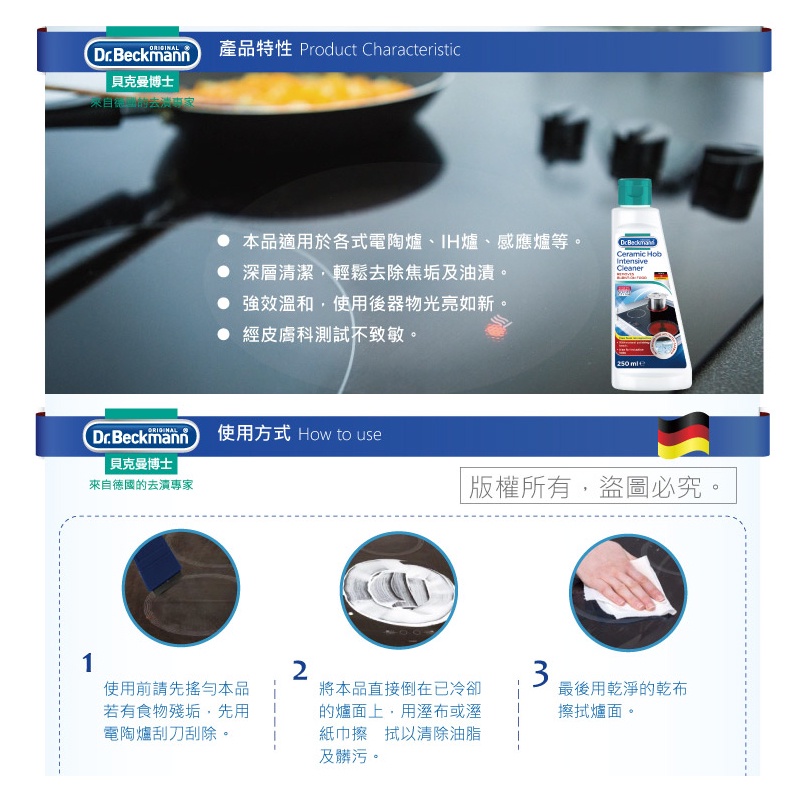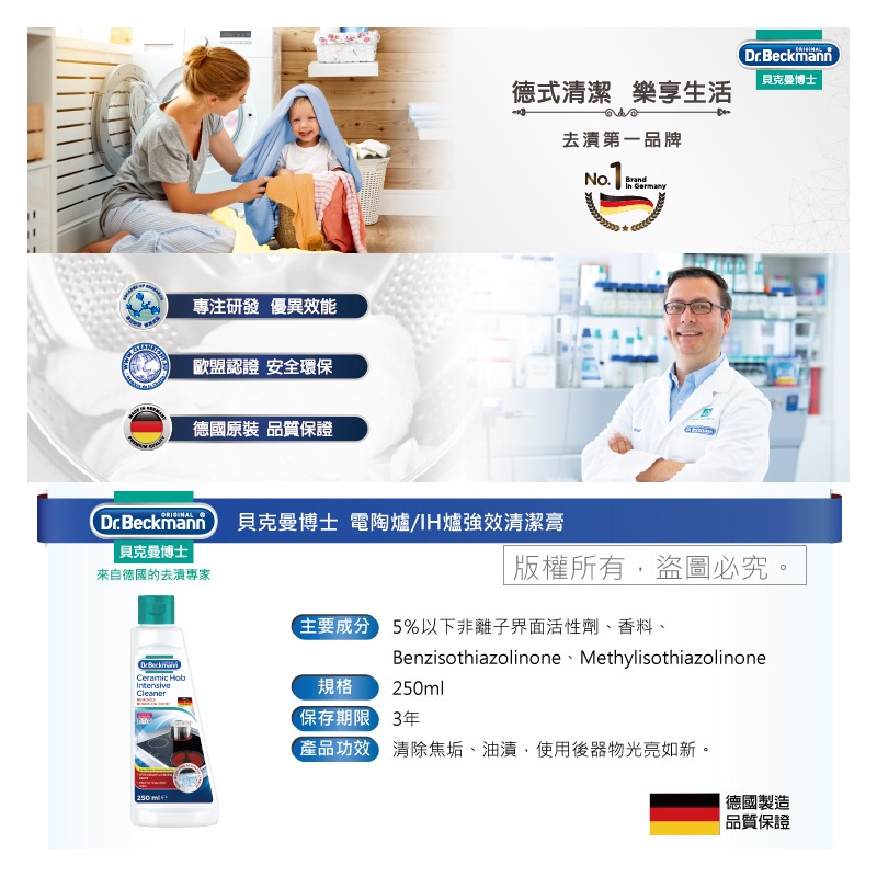 【Dr.Beckmann】貝克曼博士德國原裝進口電陶爐/IH爐亮澤去污劑/潔淨膏兩款250ml