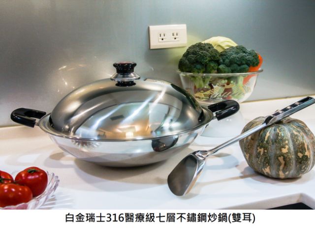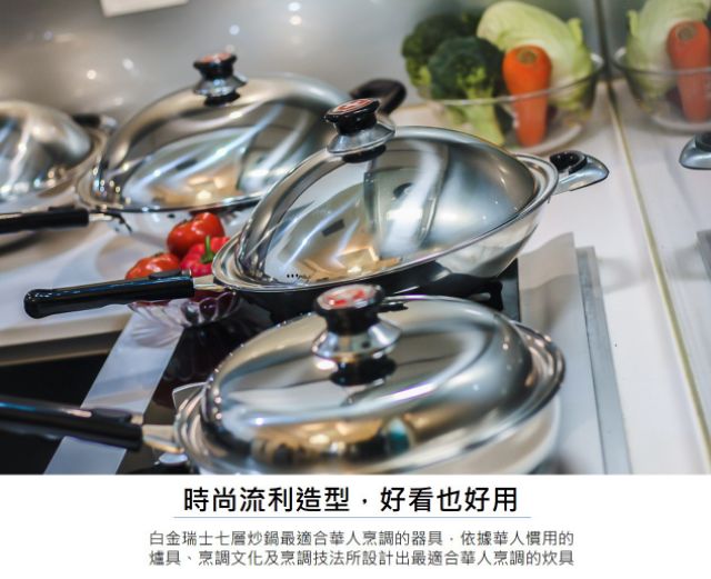 白金瑞士 316醫療級七層不鏽鋼炒鍋 可用鋼刷洗滌 即日起送刀具組至2026/2/28止
