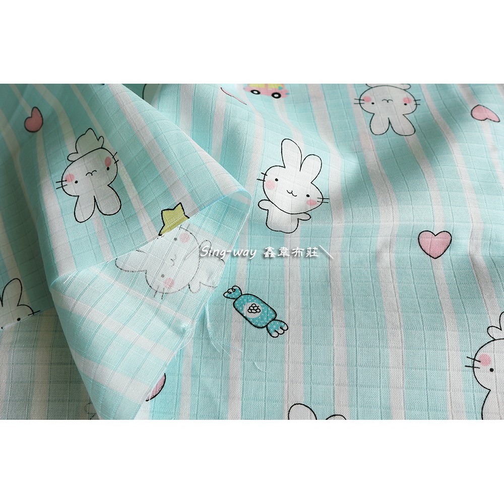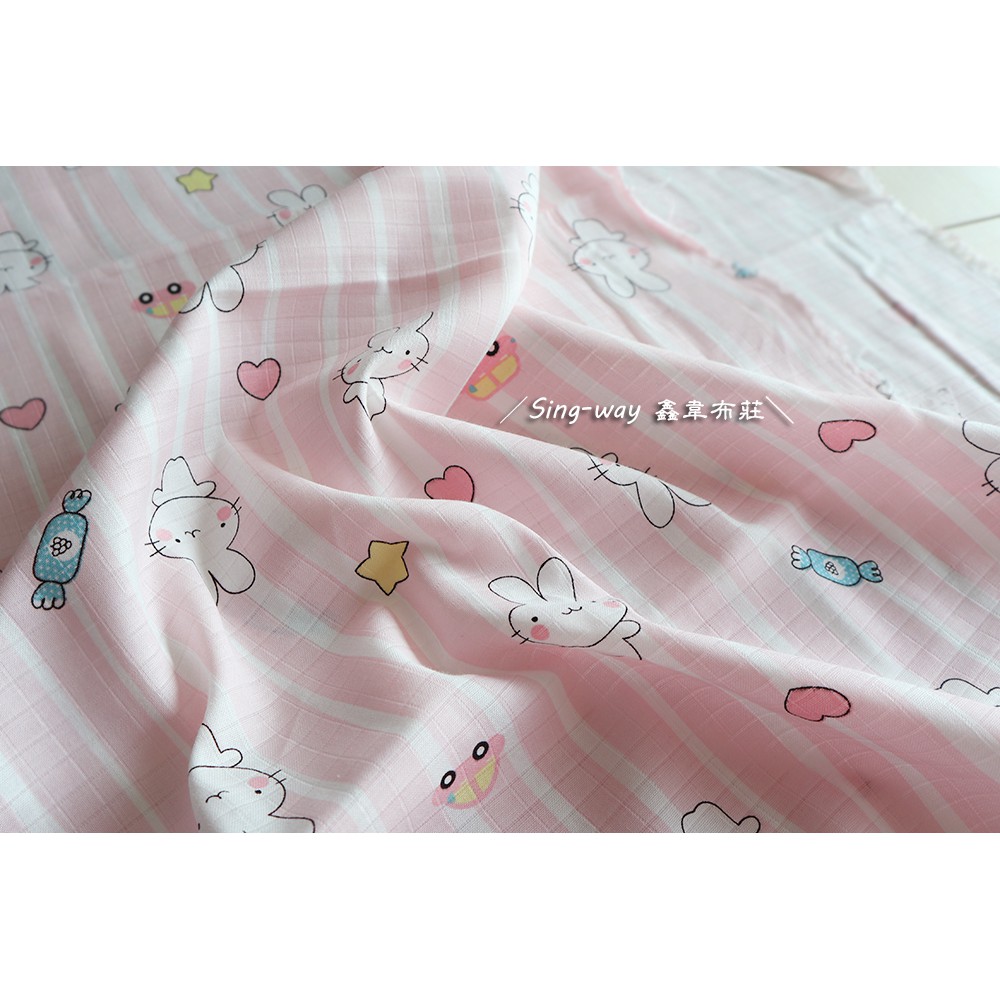 愛心條紋兔 [厚二重紗] 重紗 雙重紗 嬰兒紗布衣 手帕 口水巾 CA890056 鑫韋