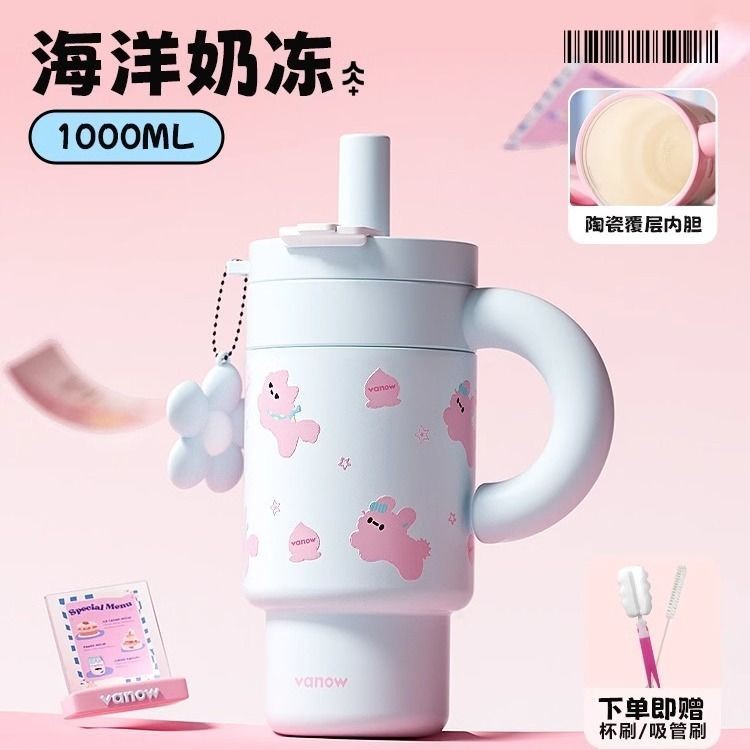 Vanow 巧巧保溫杯 水杯 1000ML大容量水壺 陶瓷內膽保溫杯 吸管水壺 陶瓷冰霸杯 保冰杯