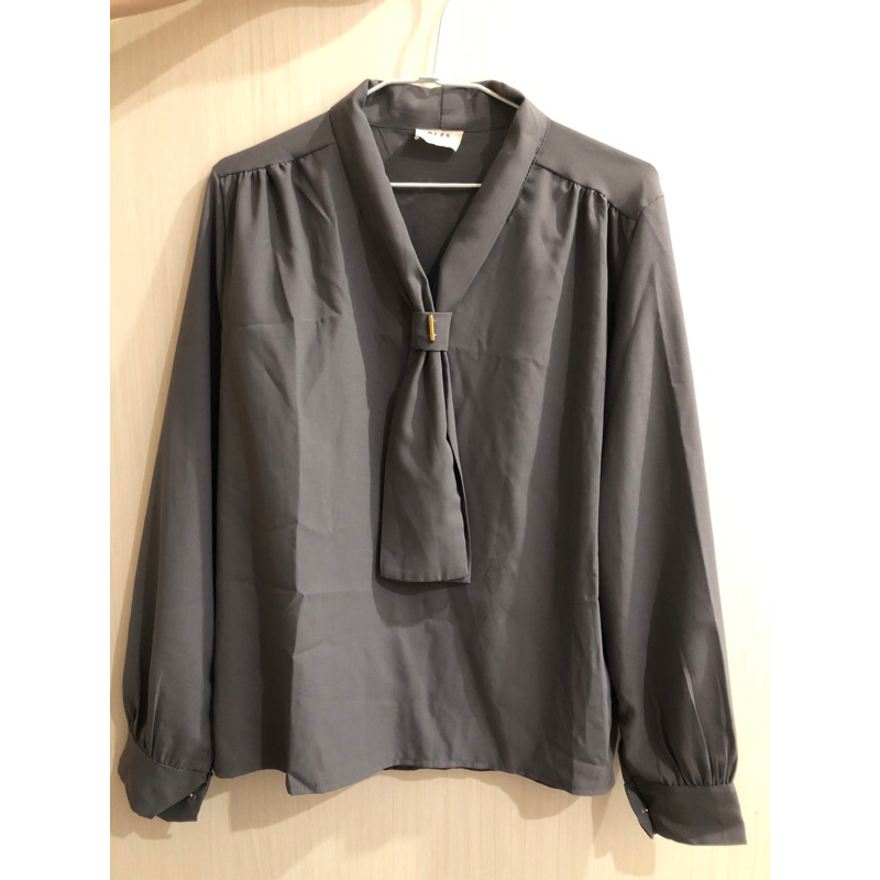 長袖V領氣質灰色領結雪紡衫襯衫 尺寸F