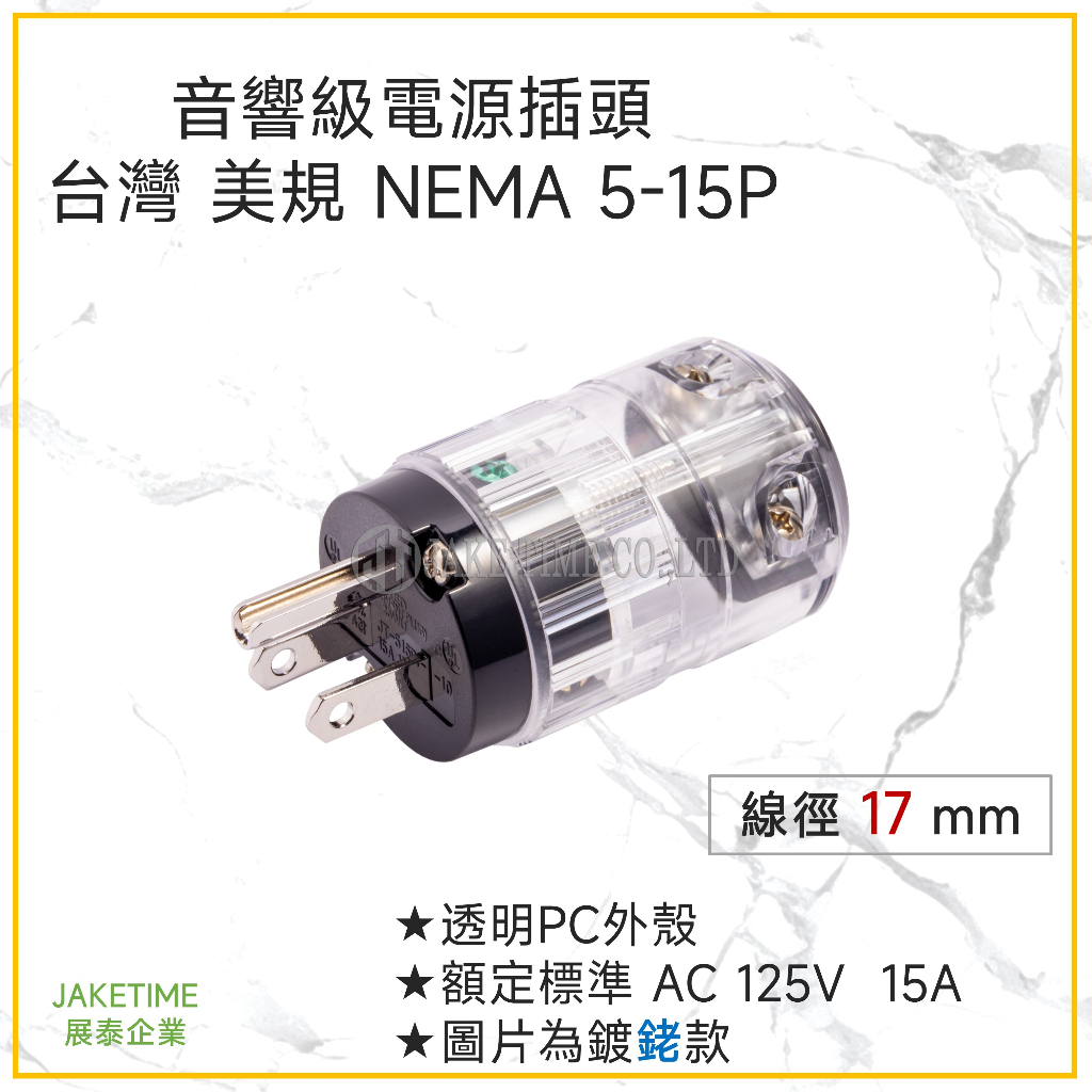 【Jaketime展泰】高品質音響插頭 NEMA 5-15P 台灣 美規 發燒音響 電源頭 透明PC外殼 線徑17mm
