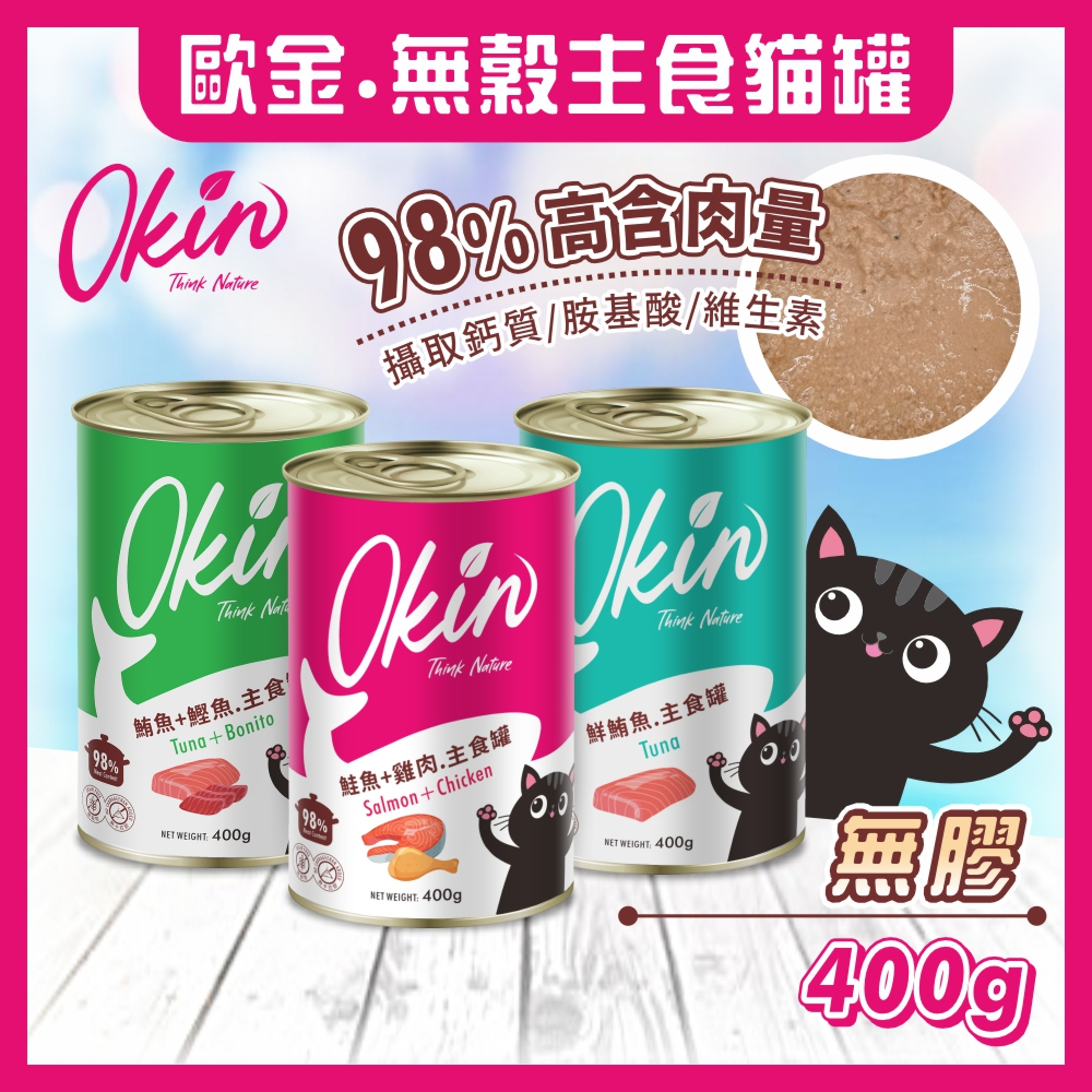 【Okin 歐金】無穀全齡貓(鮪魚 / 鮪魚+鰹魚 / 鮭魚+雞) 主食罐400克