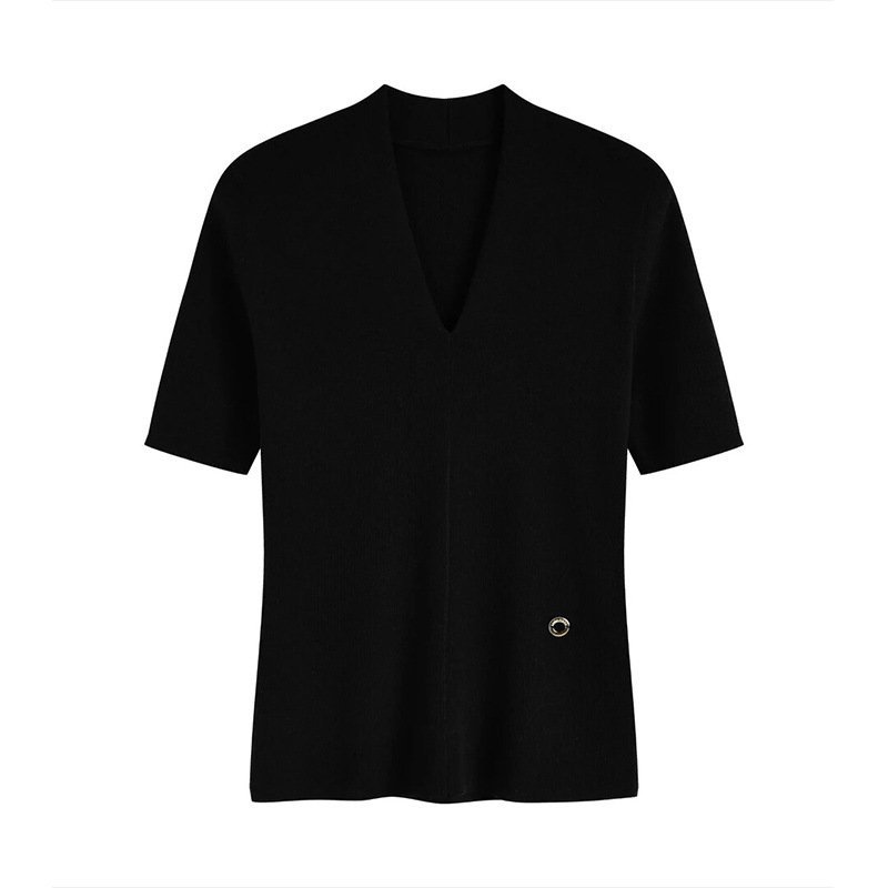 【免運】臺灣出貨 夏季T恤女 年夏季新款v領短袖純色針織衫女高級感氣質通懃修身百搭上衣 CKCU