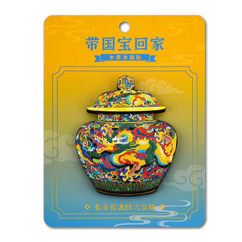 🔥臺灣熱賣好貨🔥免運包郵博物館文創木質冰箱貼國寶故宮龍袍文物景泰藍雲龍紋罐國潮禮品 FT4U