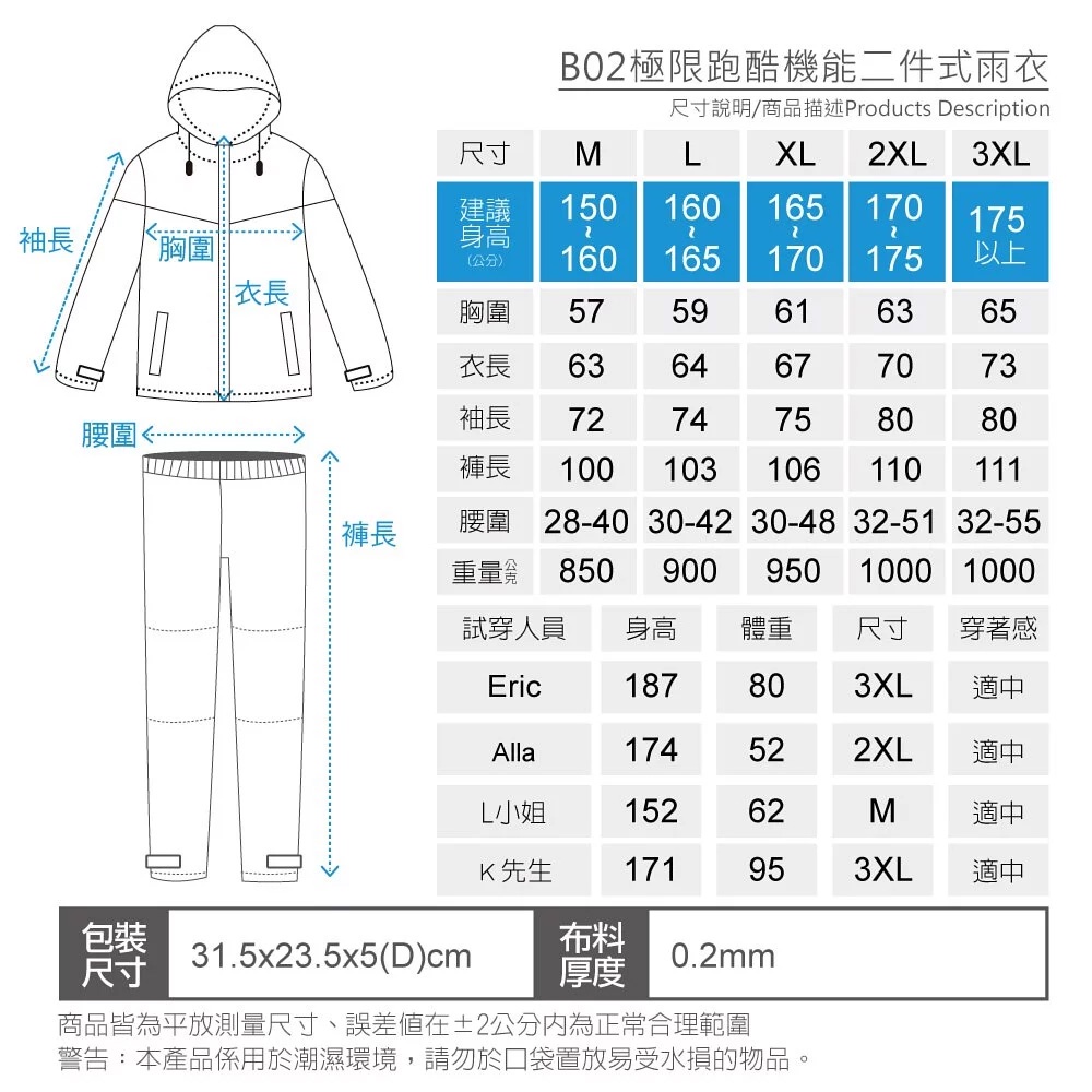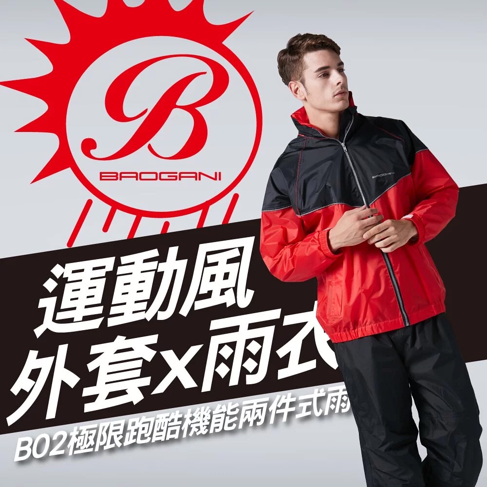 【優惠特價】BAOGANI 寶嘉尼 B02 極限跑酷機能 二件式雨衣 紅色 雨衣 防水 防風 快乾 輕量型