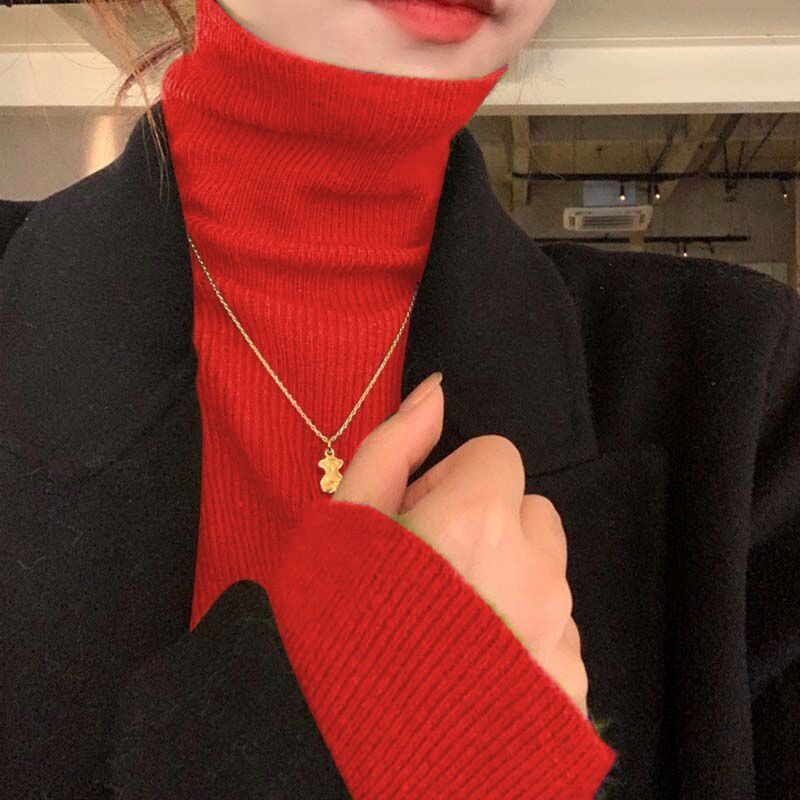 氣質長袖🥙 燕麥色針織打底衫女內搭秋季修身顯chic高領堆堆領打底毛衣上衣冬