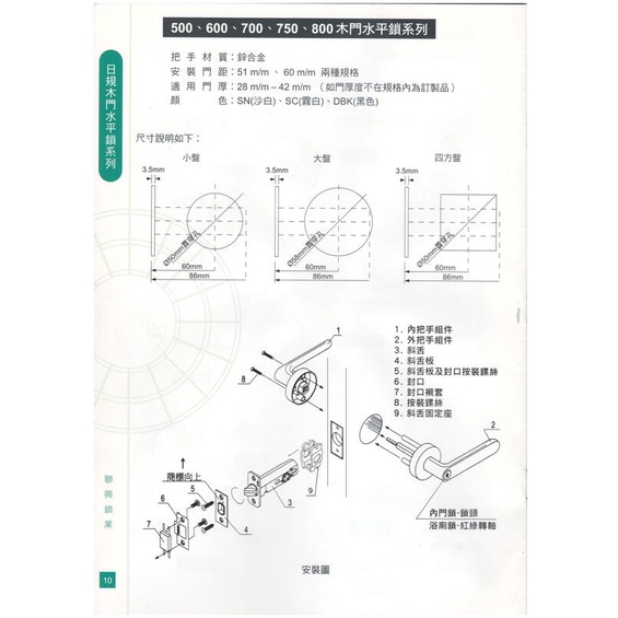 日規水平鎖 LS-700 小套盤 裝置距離51mm/60mm (三鑰匙)把手鎖 房門鎖 通道鎖 客廳鎖 辦公室門鎖