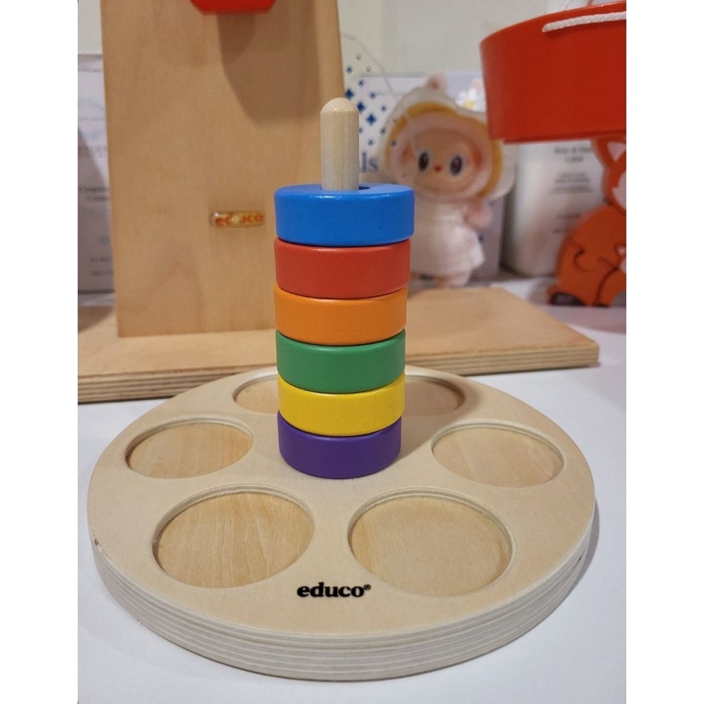 【Educo® 】木製彩虹堆疊環 Montessori 啟發式幼兒教育玩具|堆疊玩具 手眼協調 精細動作 0-3歲適用