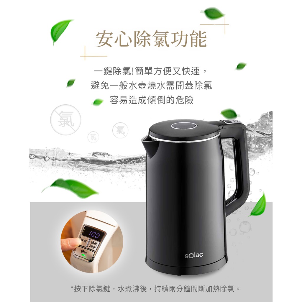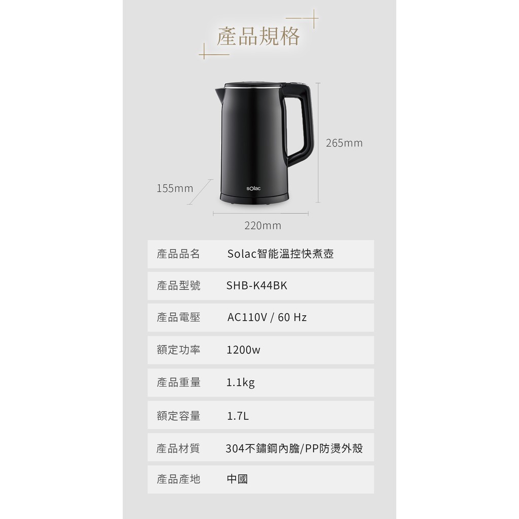 sOlac SHB-K44BK 智能溫控快煮壺 快煮壺 溫控壺 開水壺 除氯功能 1.7L大容量 公司貨 保固一年