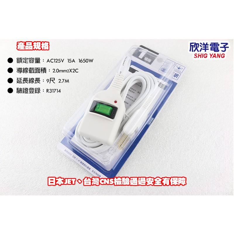 MIG明家 延長線 180度旋轉插頭 2孔 1開1插 15A 1.8-2.7M 安全電源延長線 C8101A