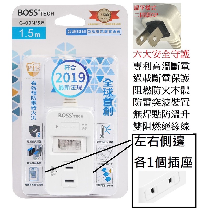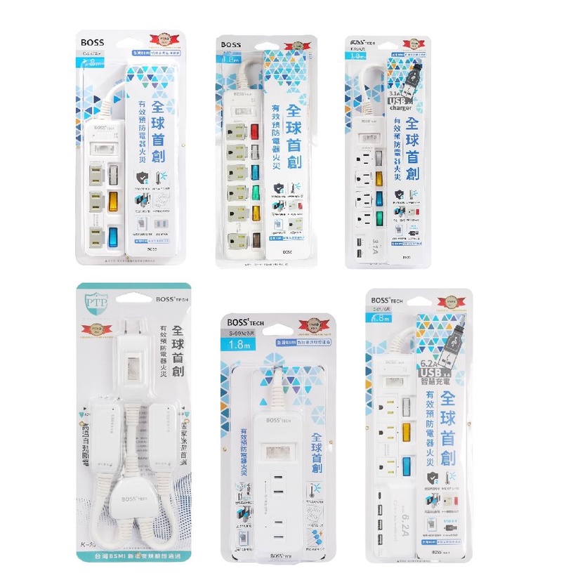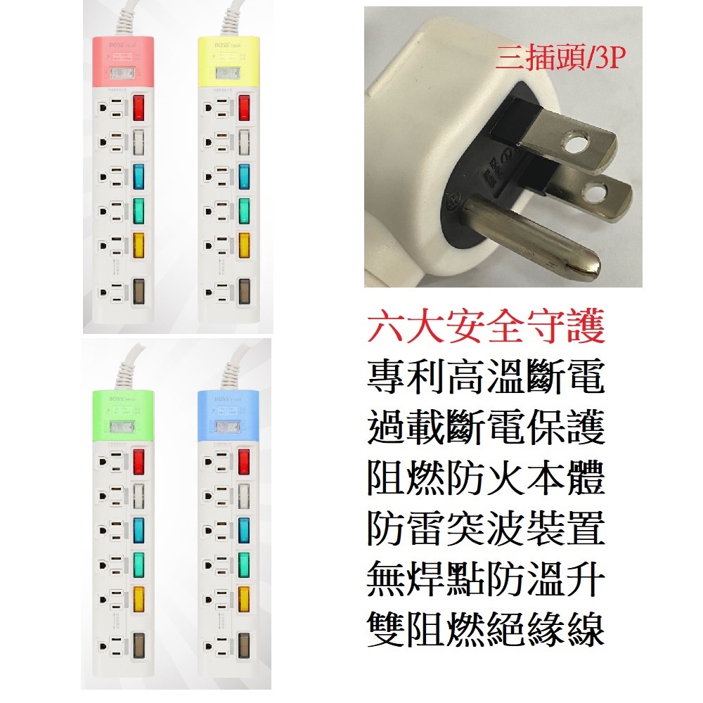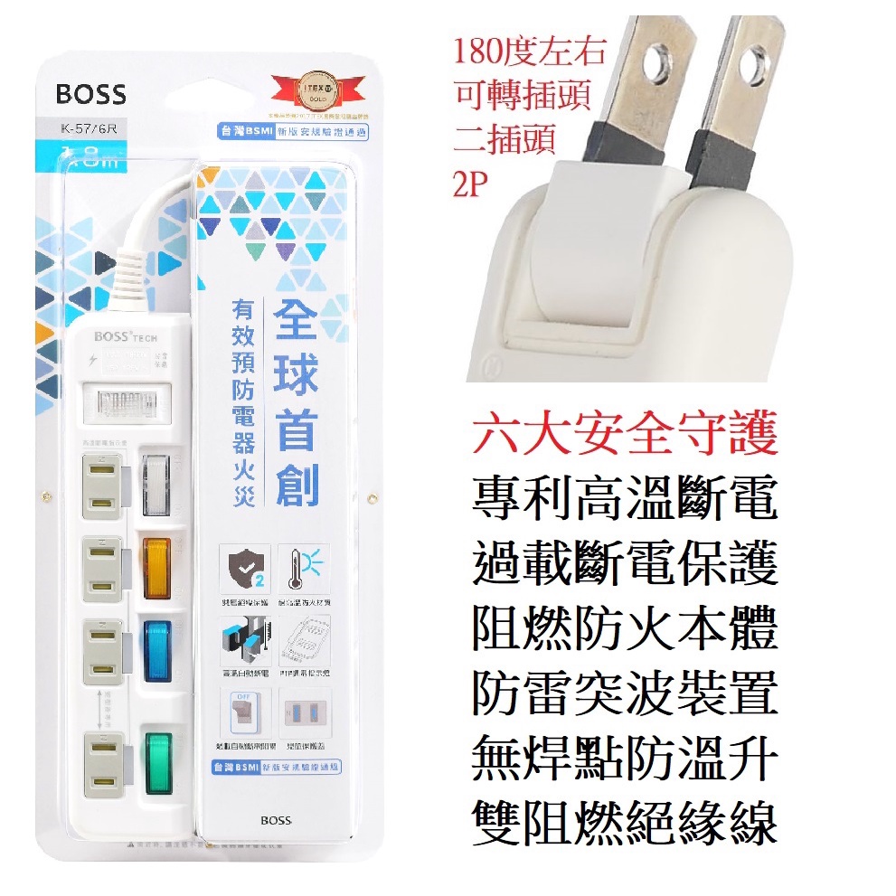 延長線 BOSS 台灣最新法規 全球專利 高溫斷電延長線1.8米 2.7米 預防火災過載斷電 防火材質 3000萬險