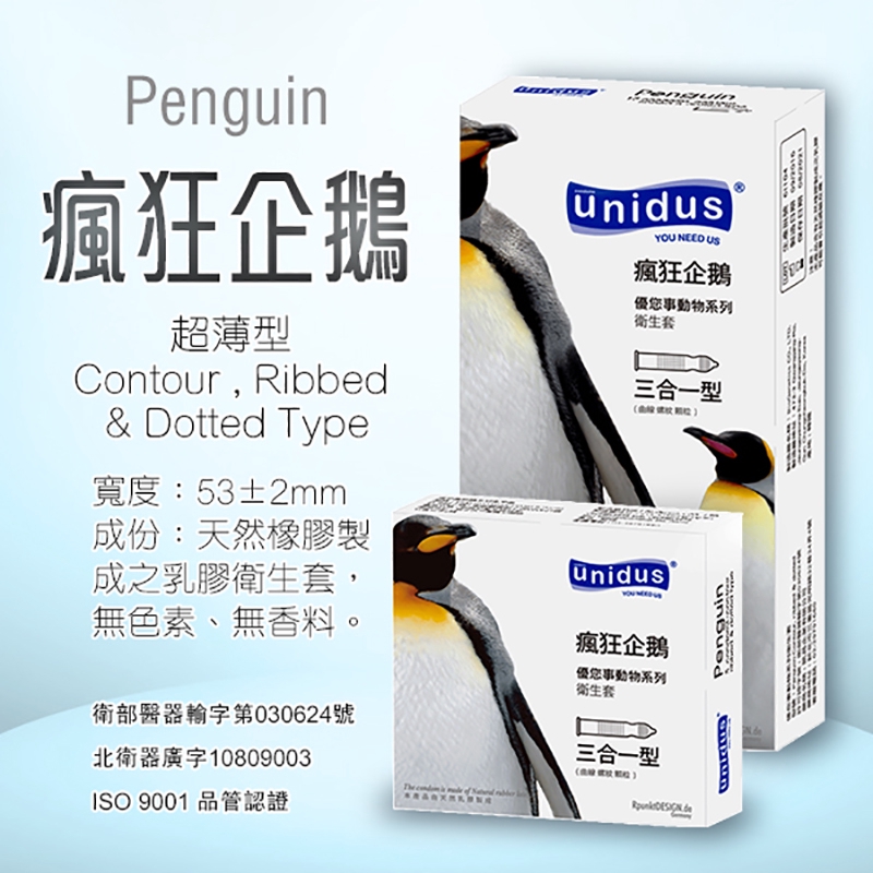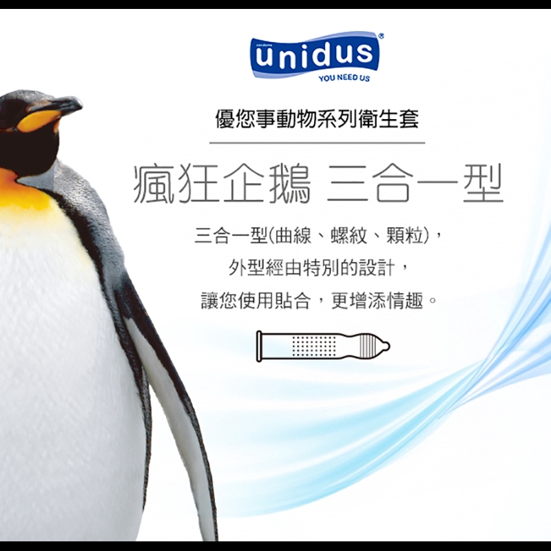 unidus優您事 動物系列保險套-瘋狂企鵝-三合一型 12入