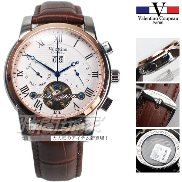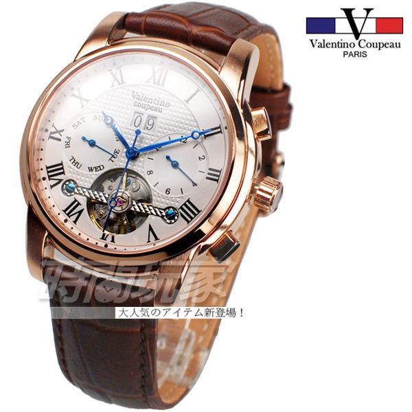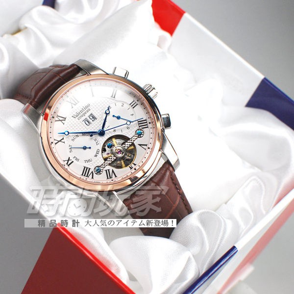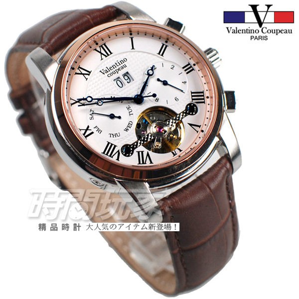 valentino coupeau范倫鐵諾 V61369白咖 自動上鍊機械錶 藍寶石 防水手錶 男錶 皮帶錶 【時間玩家