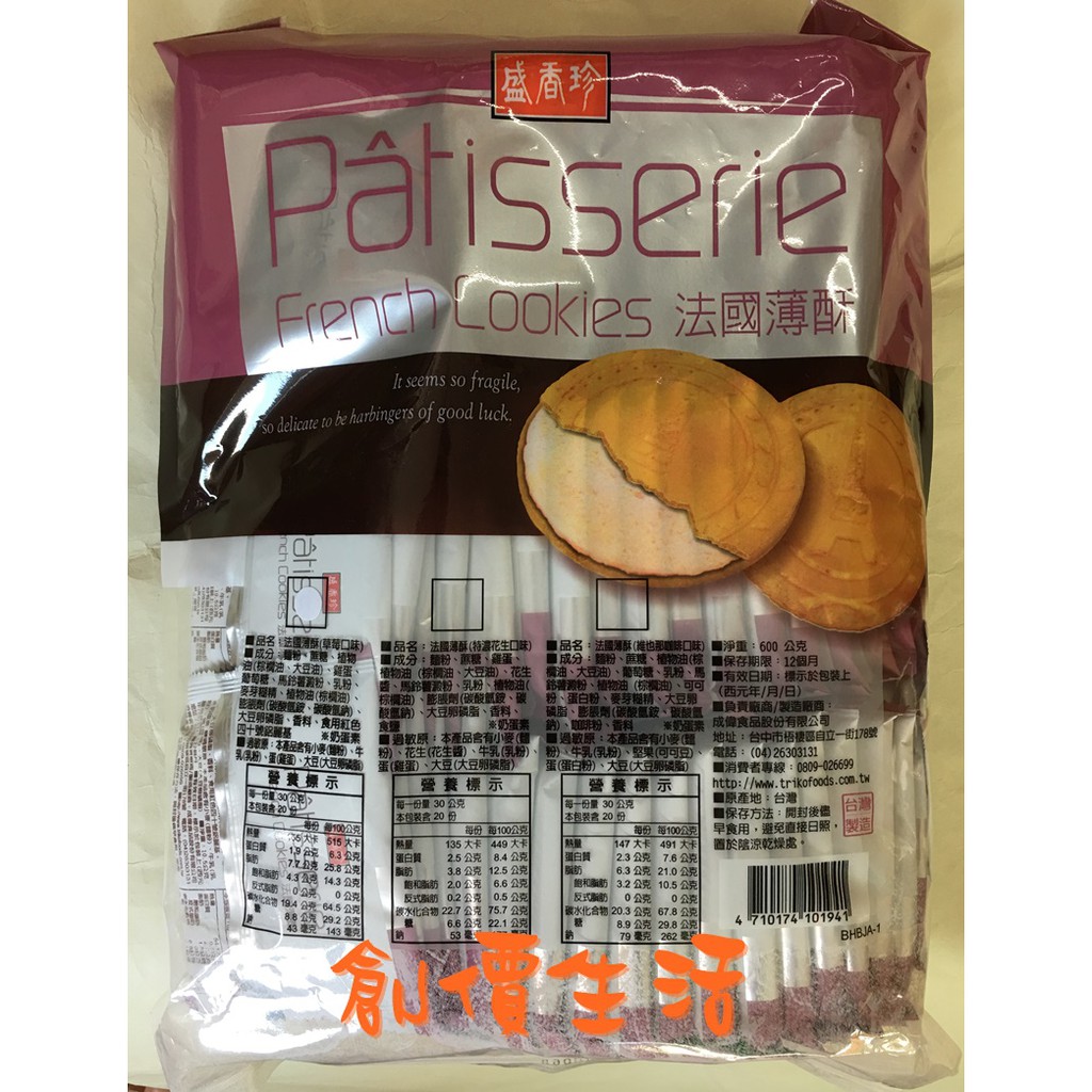 ~創價生活~台灣零食 餅乾 盛香珍 法國薄餅 法蘭酥 法國薄酥 經濟包 500公克 草莓口味(另有咖啡口味)
