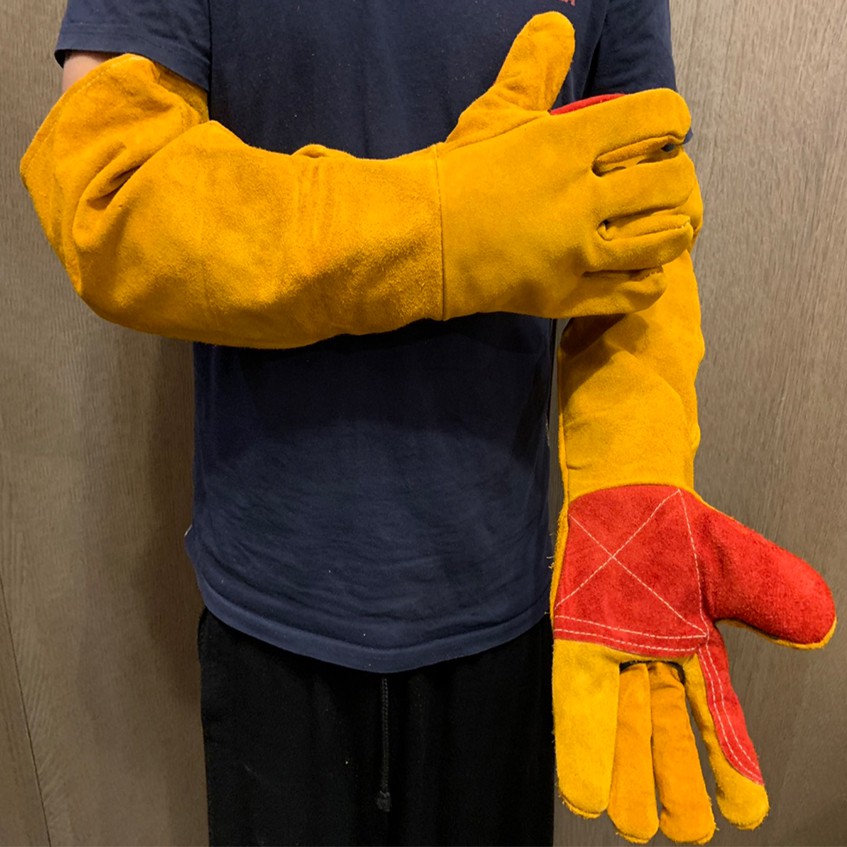 ~子甄彣璟~60公分加長 電焊手套 銲接手套 氬焊手套 牛皮手套 防護手套 五指 工作手套 防咬手套 防燙耐磨 防火花
