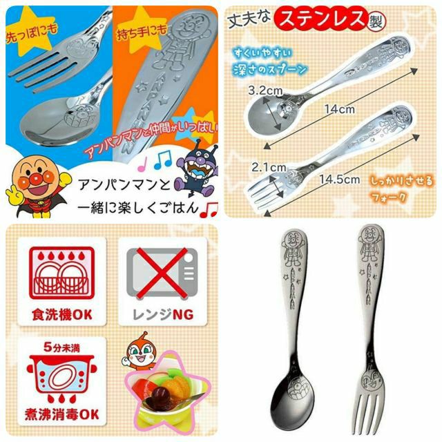 ~小珍妮精品~✈日本直送 日本代購 麵包超人 anpanman 湯匙 叉子 不銹鋼 塑膠柄 不鏽鋼湯匙 不鏽鋼叉 兒童