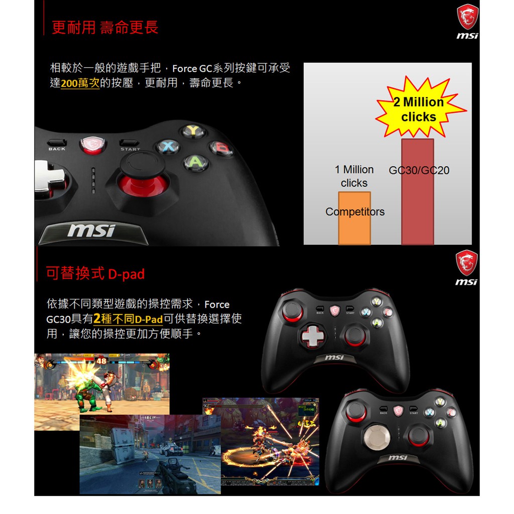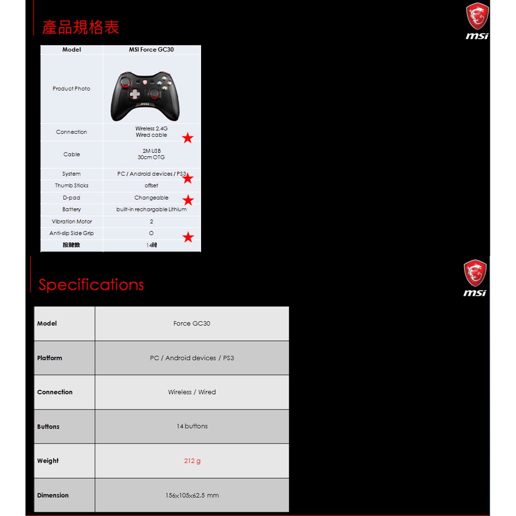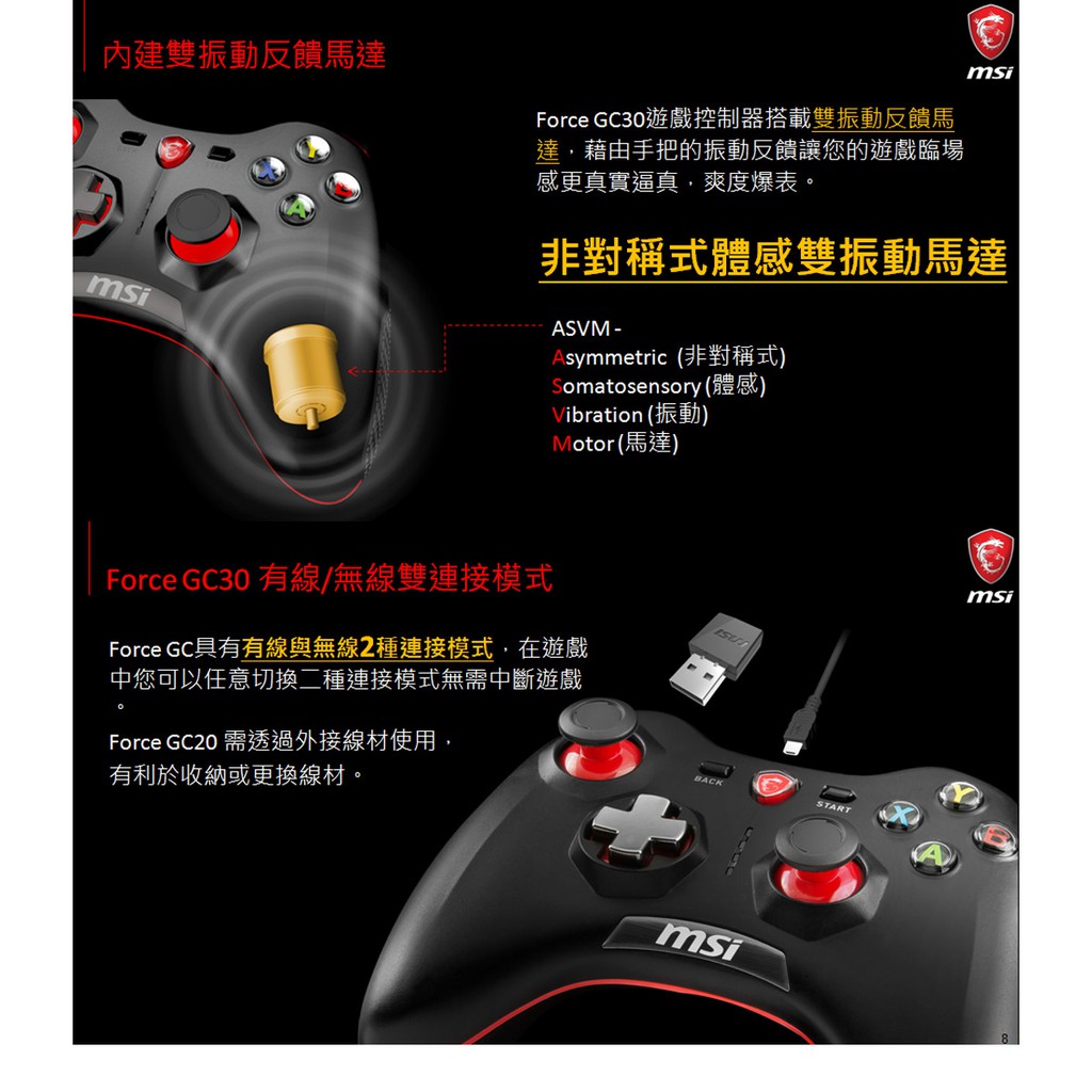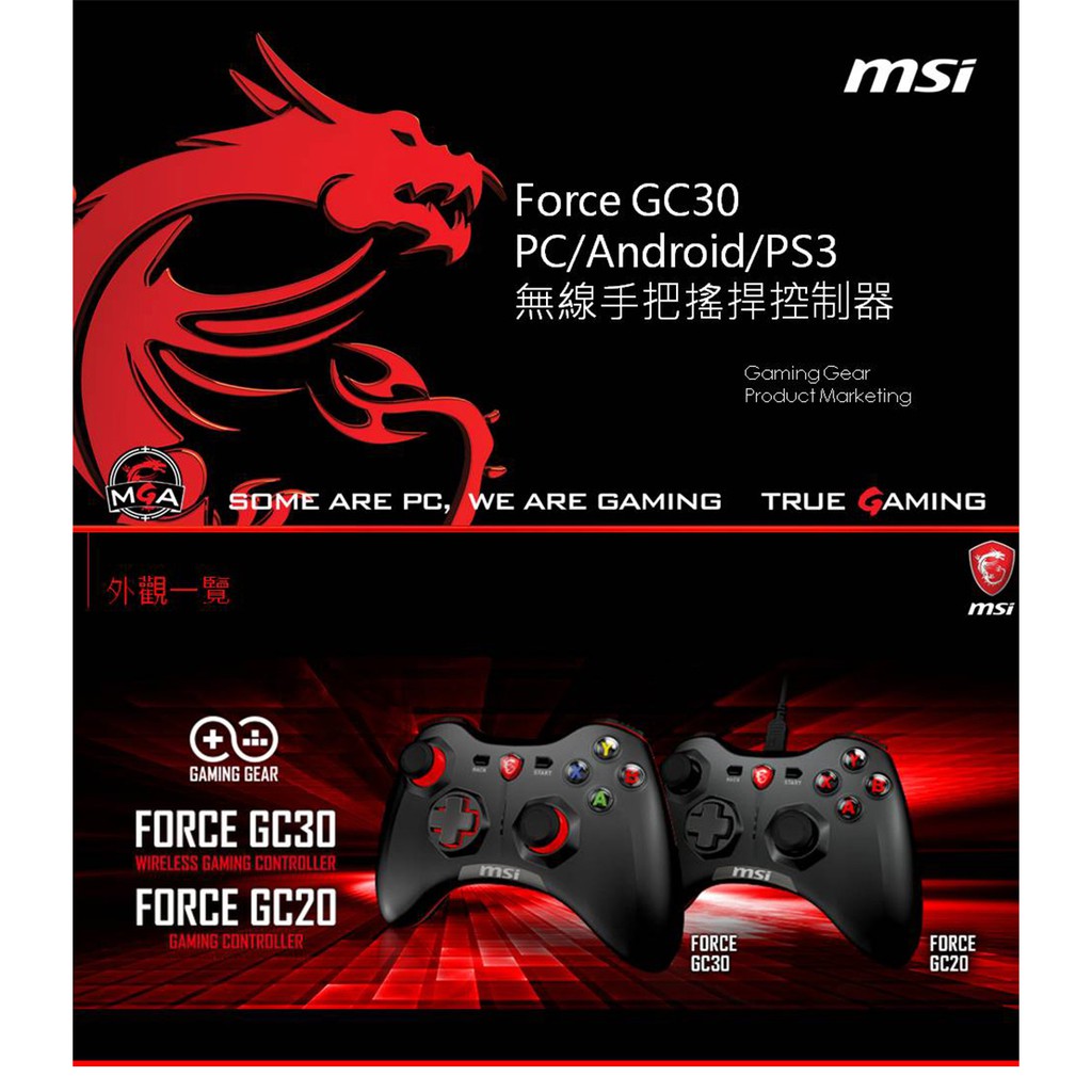 ~現貨商MSI微星Force GC30 (PC /PS3 /Android三平台) 無線搖捍控制器遊戲手把
