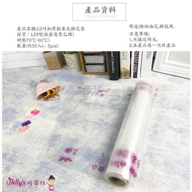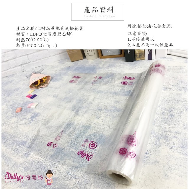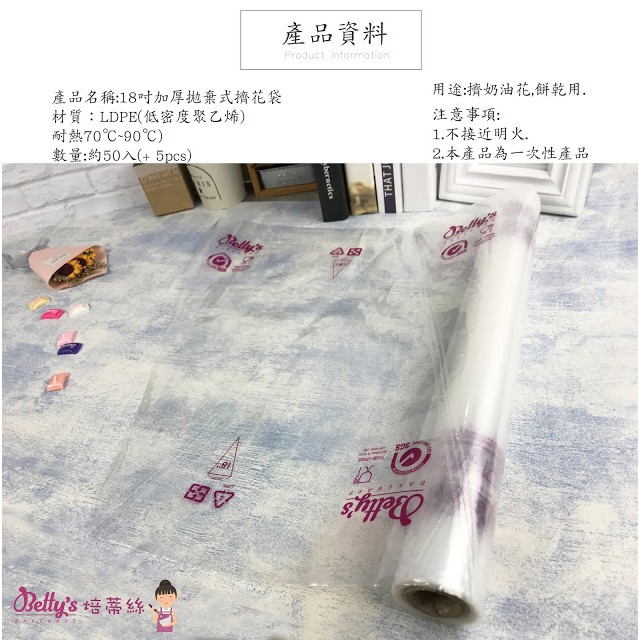糖糖烘焙 焙蒂絲 12吋/14吋/16吋/18吋 加厚拋棄式擠花袋 加強雙壓邊 50入 奶油 曲奇餅乾 一次性擠花袋