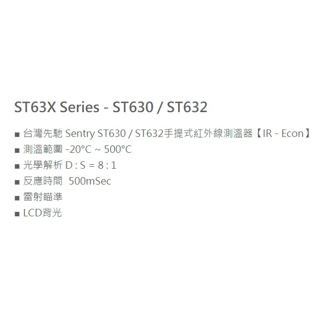 ~靚品科技~ SENTRY 紅外線溫度槍 ST630 -20°C ~ 500°C 測溫槍 冷凍 空調 電氣維修 溫度測