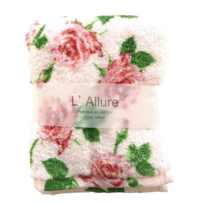 ~~凡爾賽生活精品~~全新日本進口粉底紅色玫瑰花綠葉造型純棉大毛巾~日本製